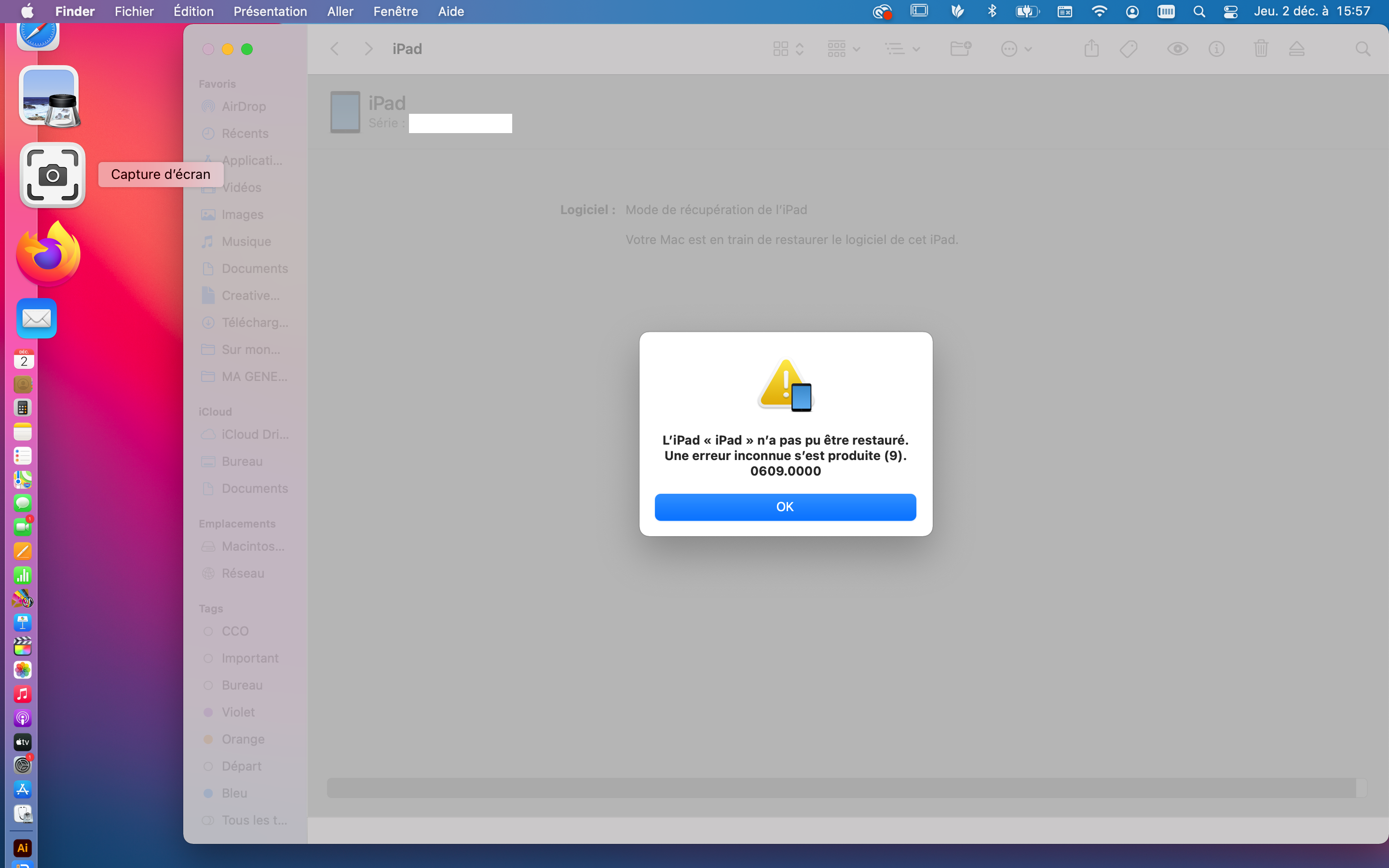Erreur inconnue (9) 0609.0000 lors de restauration iPad