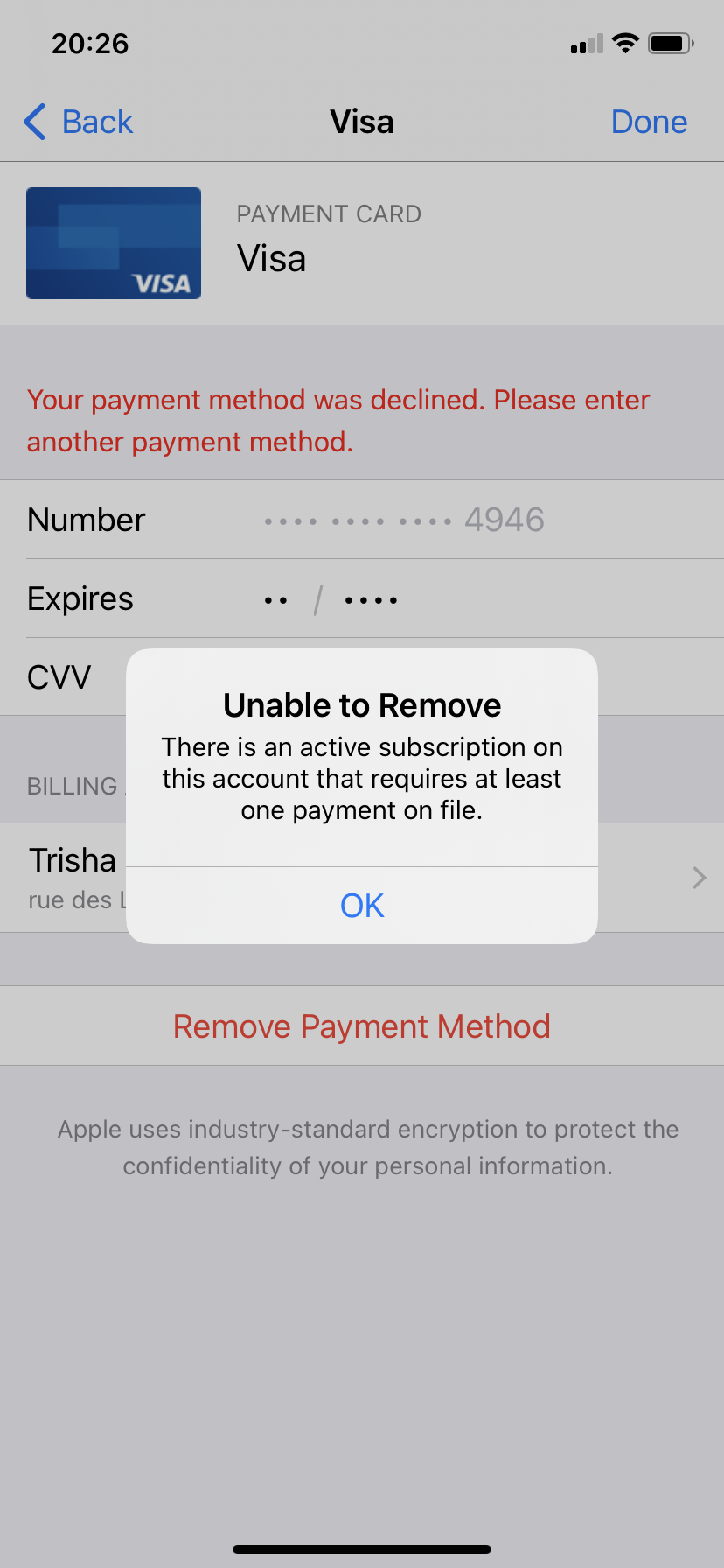 Je n’arrive pas à modifier un mode de paiement même en ayant la version la plus récente de l’iOS. Je n’arrive donc pas à renouveler mes abonnements.