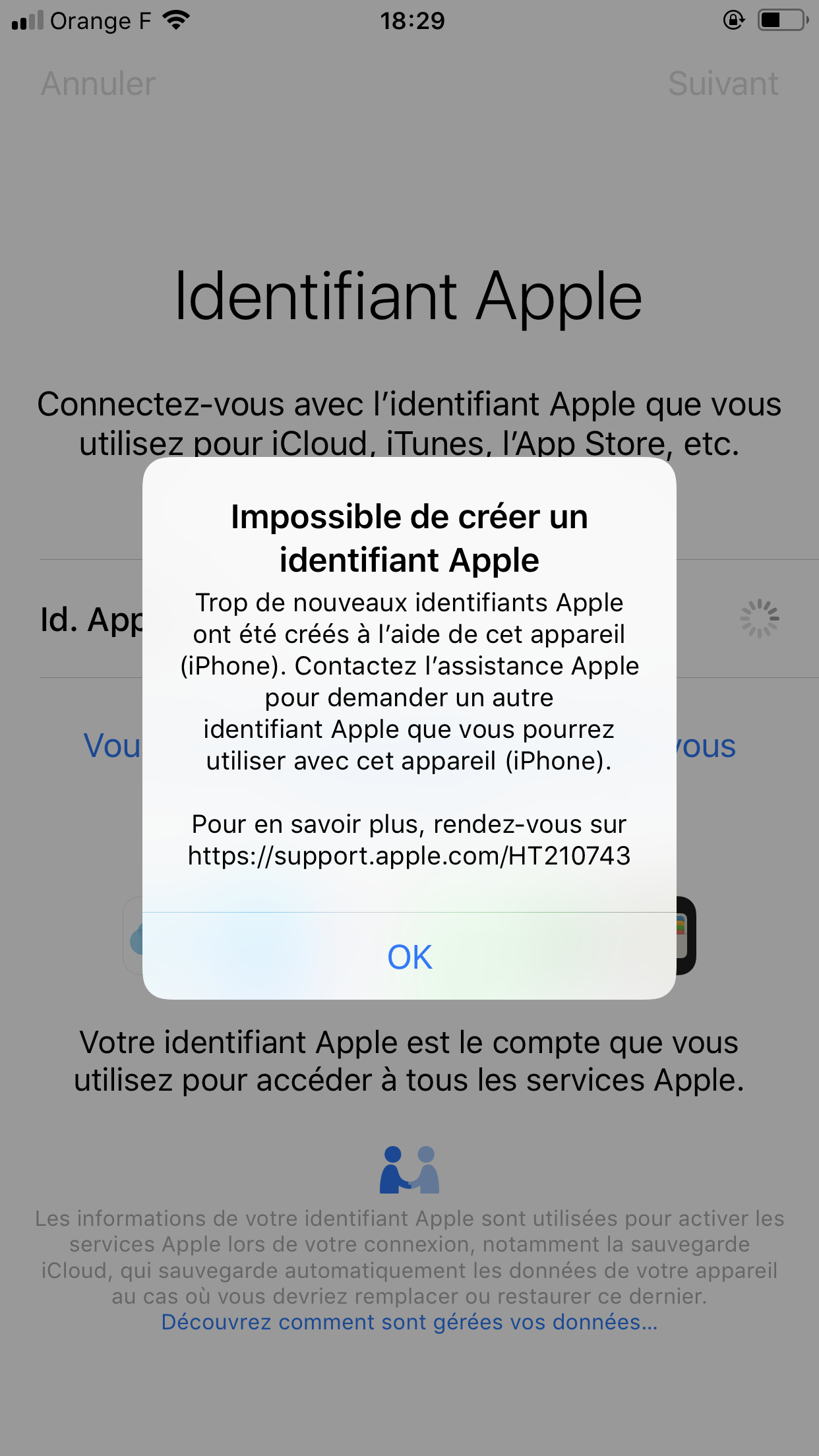 Vous allez devoir configurer votre Identifiant Apple depuis un autre appareil, une fois terminé, vous pourrez le connecter sur cet iPhone.