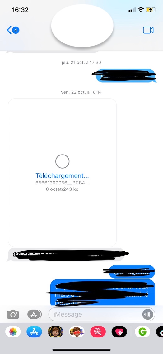Je clique sur une discussion, puis sur le nom de la personne, je descends en bas j’ai bien le message « 177 images dans icloud » je clique sur télécharger mais rien ne se passe. Je n’ai accès qu’aux dernières photos échangées.