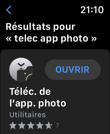 Quand je cherche dans AppStore: télécommande appareil photo, résultat
