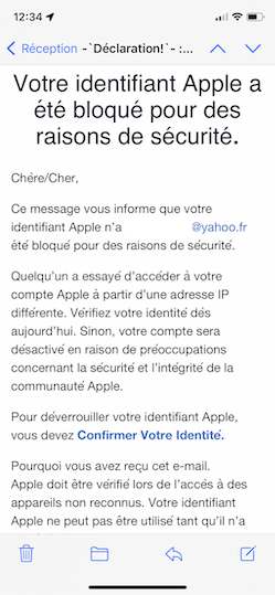 Mails suspects concernant mon identifiant Apple