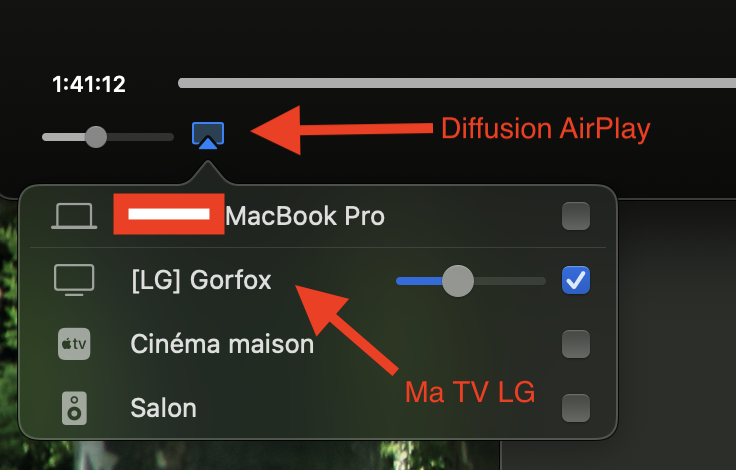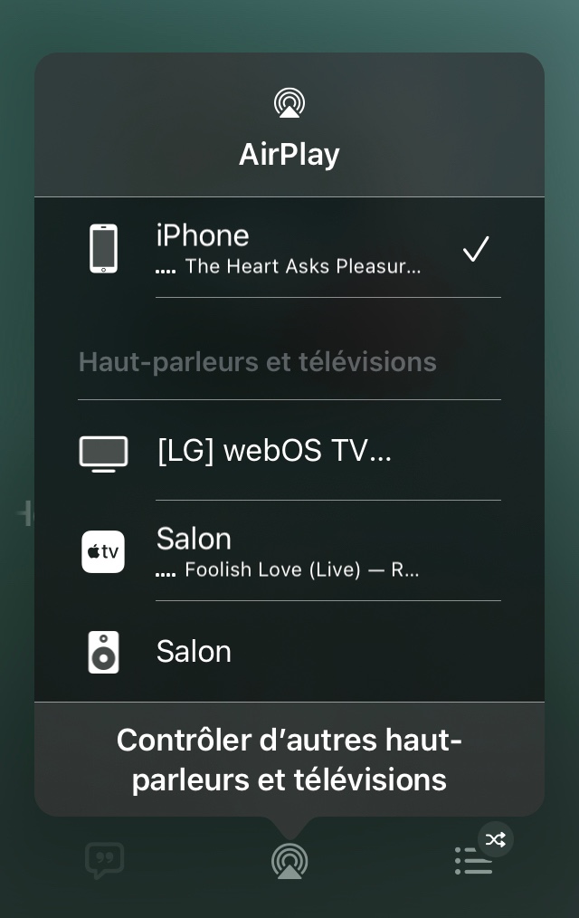 De plus, j'ai du partir l'application AirPlay (au même titre que Netflix ou Prime video) sur ma TV avant de voir apparaitre l'icône LG dans la sélection des appareils disponibles pour AirPlay dans l'application 🍏TV.