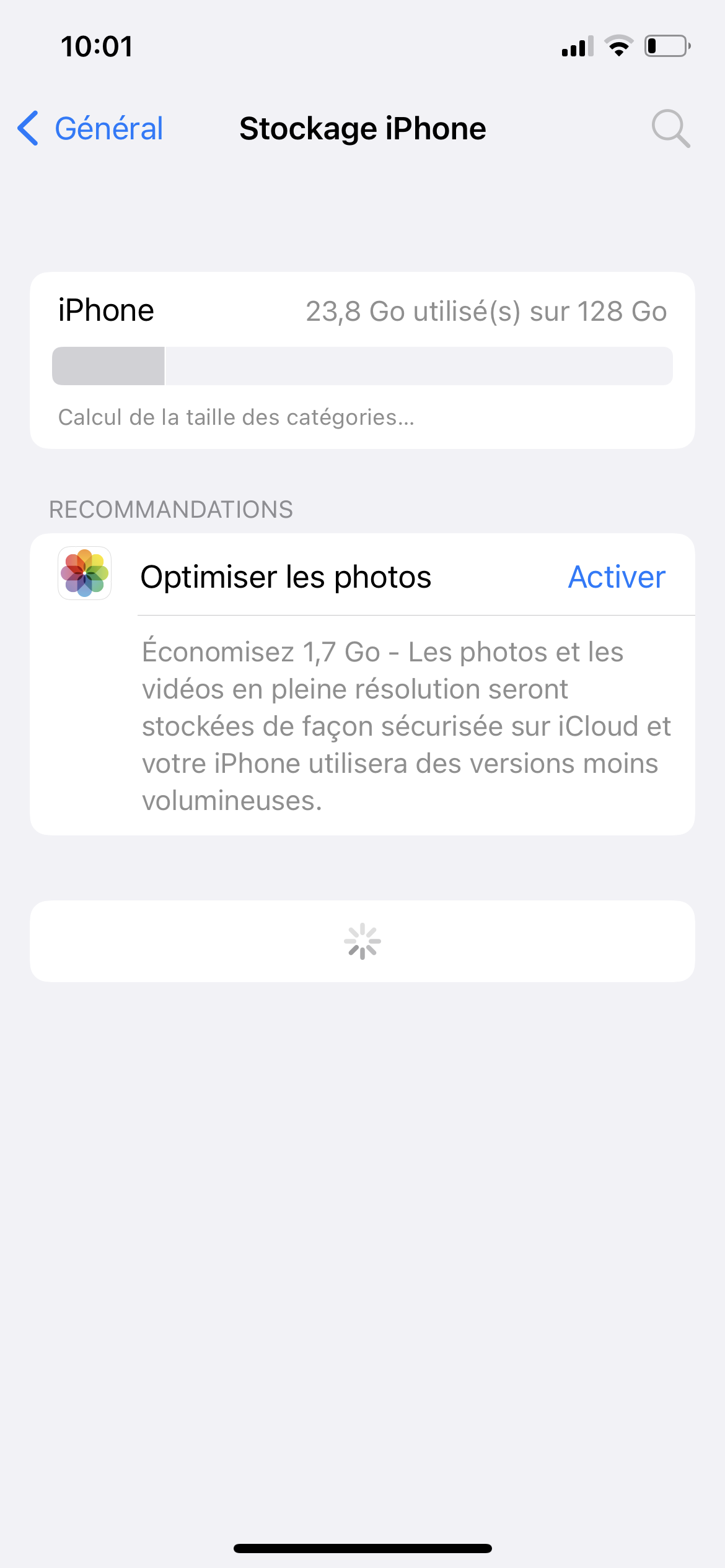 Si j'ai bien compris, le calcul du stockage utilisé sur ton iPhone ne se fait pas. Est-ce bien cela ?