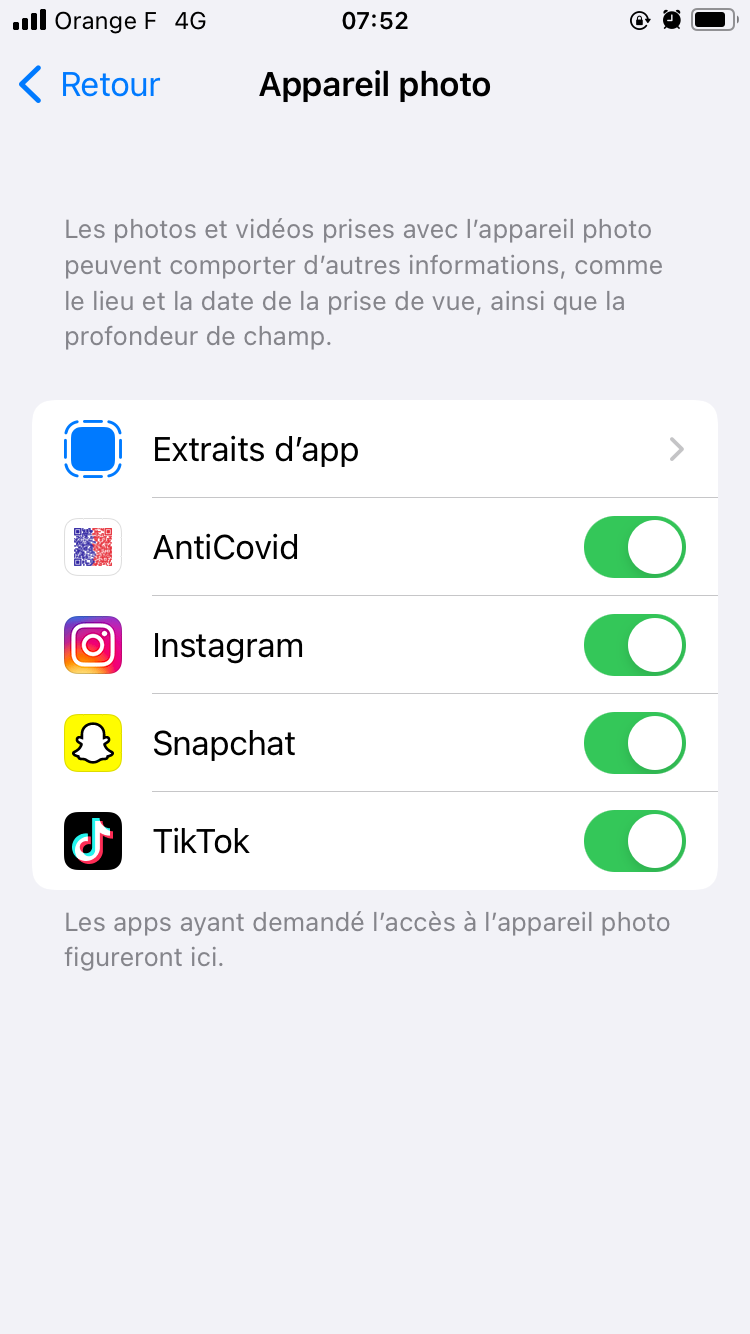 Depuis ce matin je ne peux plus accédé à Snapchat et prendre des photos sur Vinted car l’app Photos a disparue de mes autorisations, elle n’y est plus, je ne peux donc pas la cocher. Malheureusement sans ça, je ne peux donc pas utiliser mes applications !!