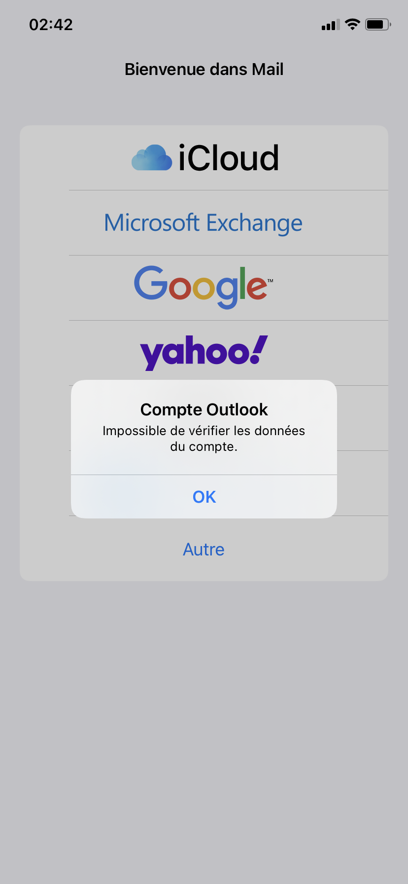 Je n’arrive plus à me connecter via l’application mail à mon compte Outlook.