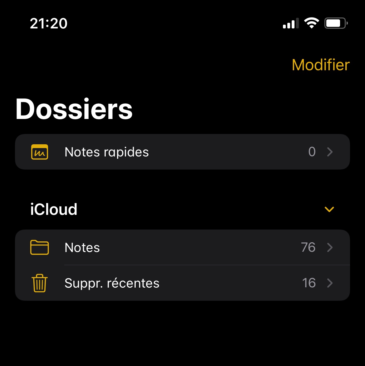 Allé dans Notes , ensuite vous appuyez en haut à droite vous avez juste appuyer sur Dossiers et vous aller voir ceci