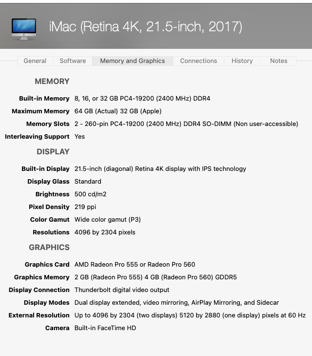Maximum Memory. 64 GB (Actual) 32 GB (Apple)