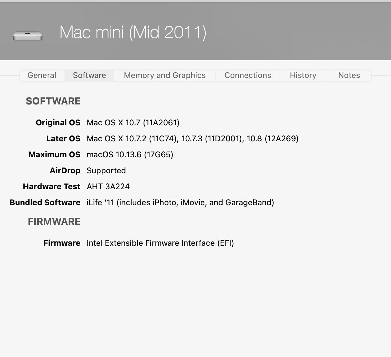 Je suis sur un vieux mac mini de 2011. système MacOs 10.6.8, noyau Darwin 10.8.0