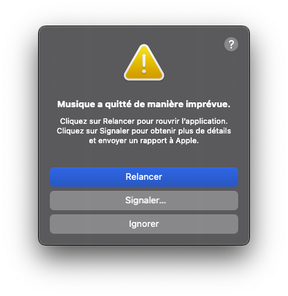 Depuis la mise à jour Monterey (version 12.1) je ne peux plus utiliser la fonction Recherche dans l'appli Musique : dès que je tape un caractère l'appli ne répond plus puis quitte de manière imprévue après .