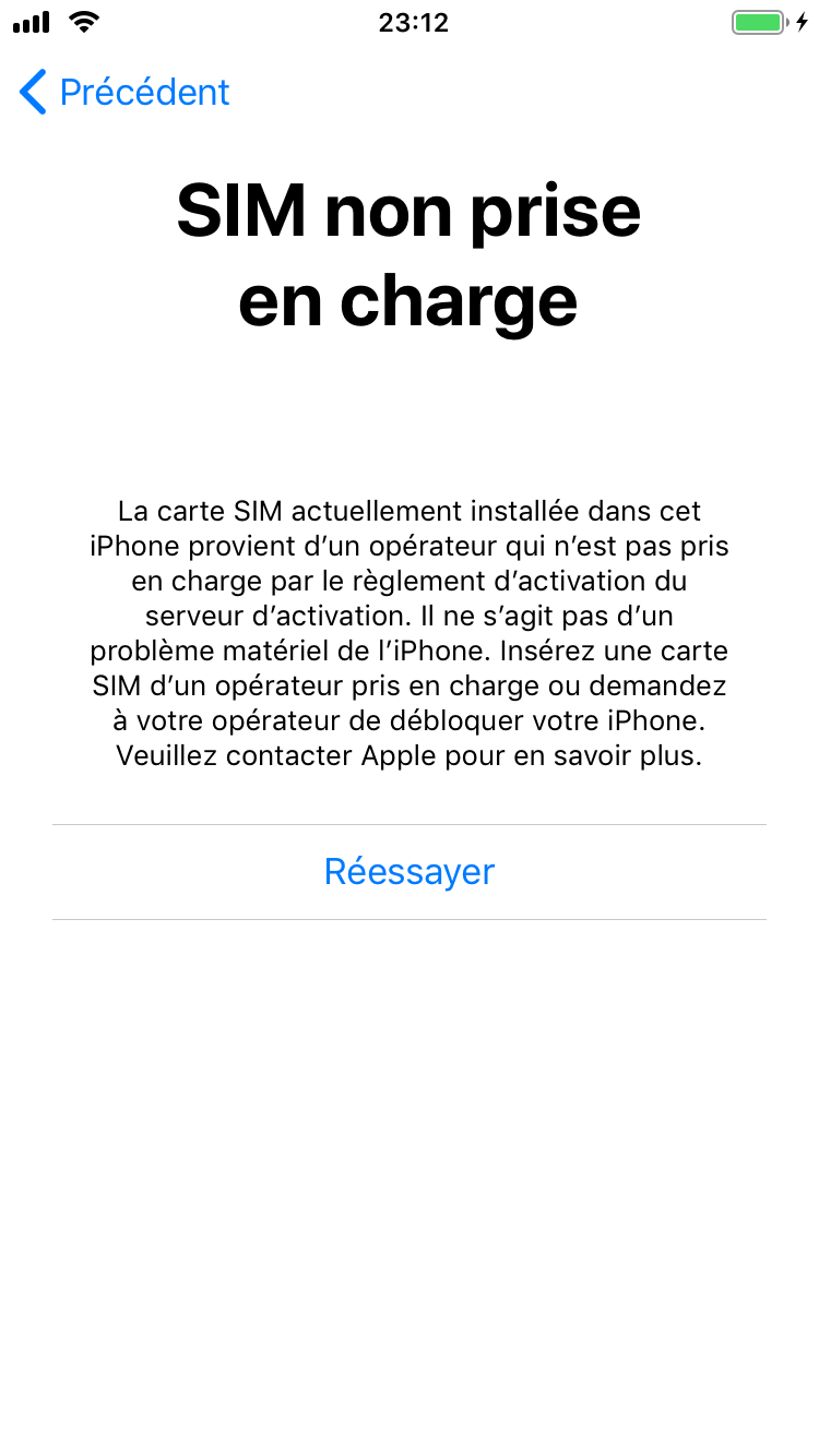 Carte SIM non prise en charge par iPhone