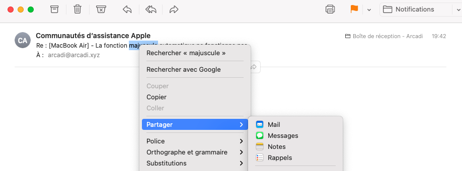 J'ai lu la procédure : maintenir CTRL + intitulé du message et "partager" avec l'App RAPPELS