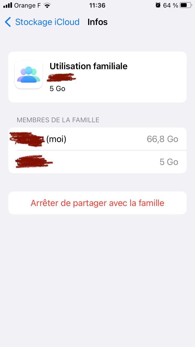Je n’arrive pas à comprendre pourquoi les 200Go ne peuvent pas être utilisé à part égale pour les 2 personnes du partage familiale ? La personne associé au partage familial ne bénéficie que de 5Go alors qu’il y’a plus de 130Go encore disponible ?