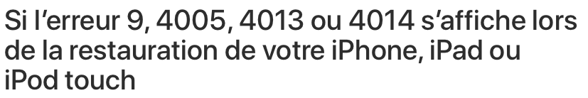 Ma fille a oublié son code d'ouverture et j'essai depuis hier de restaurer à l'origine son ipad, mais j'ai toujours un code d'erreur 4013, 4011 ou 9