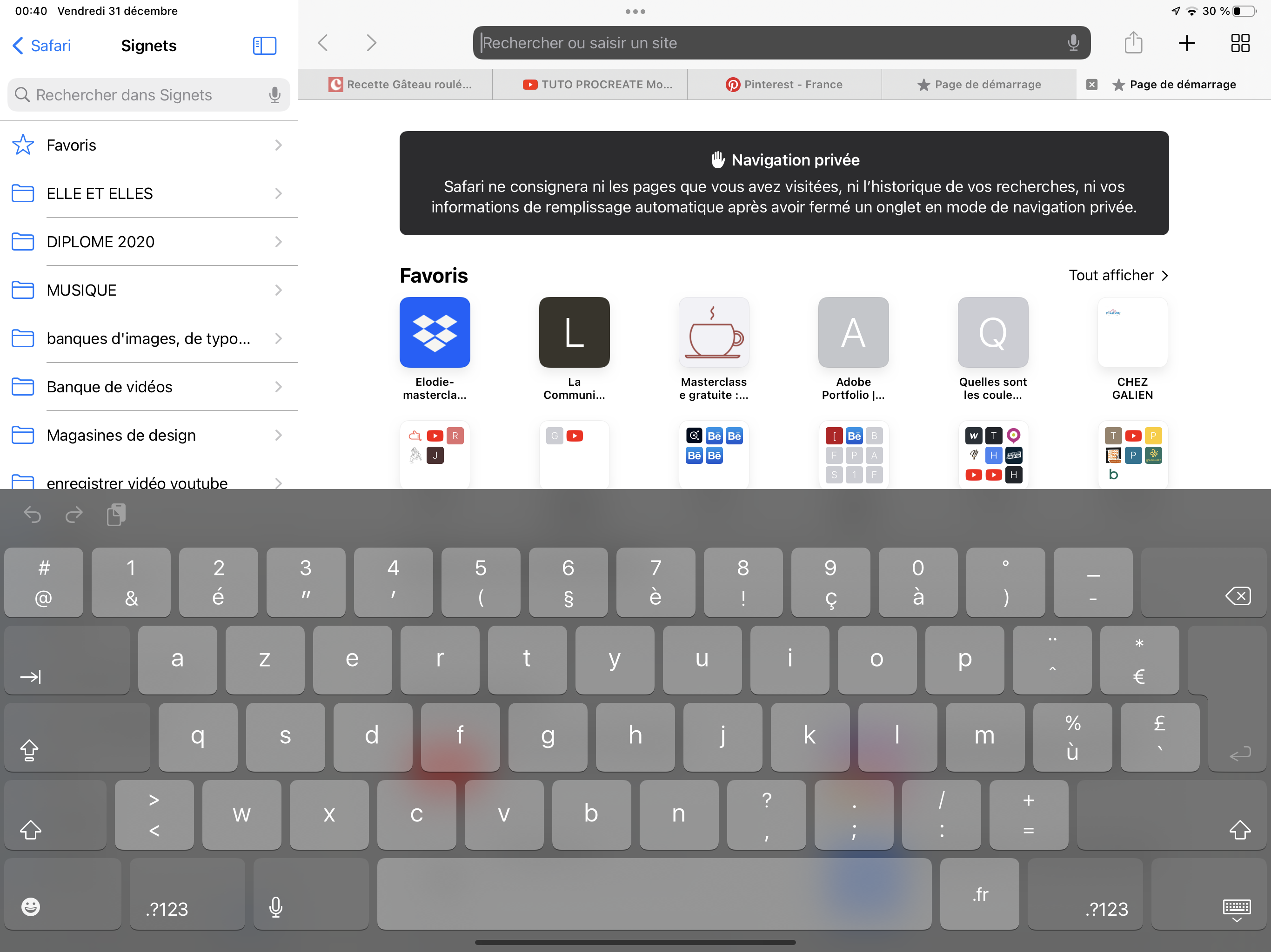 Tâches bleu et rouge sur le clavier virtuelle de l'iPad pro 12,5 pouces 4e génération