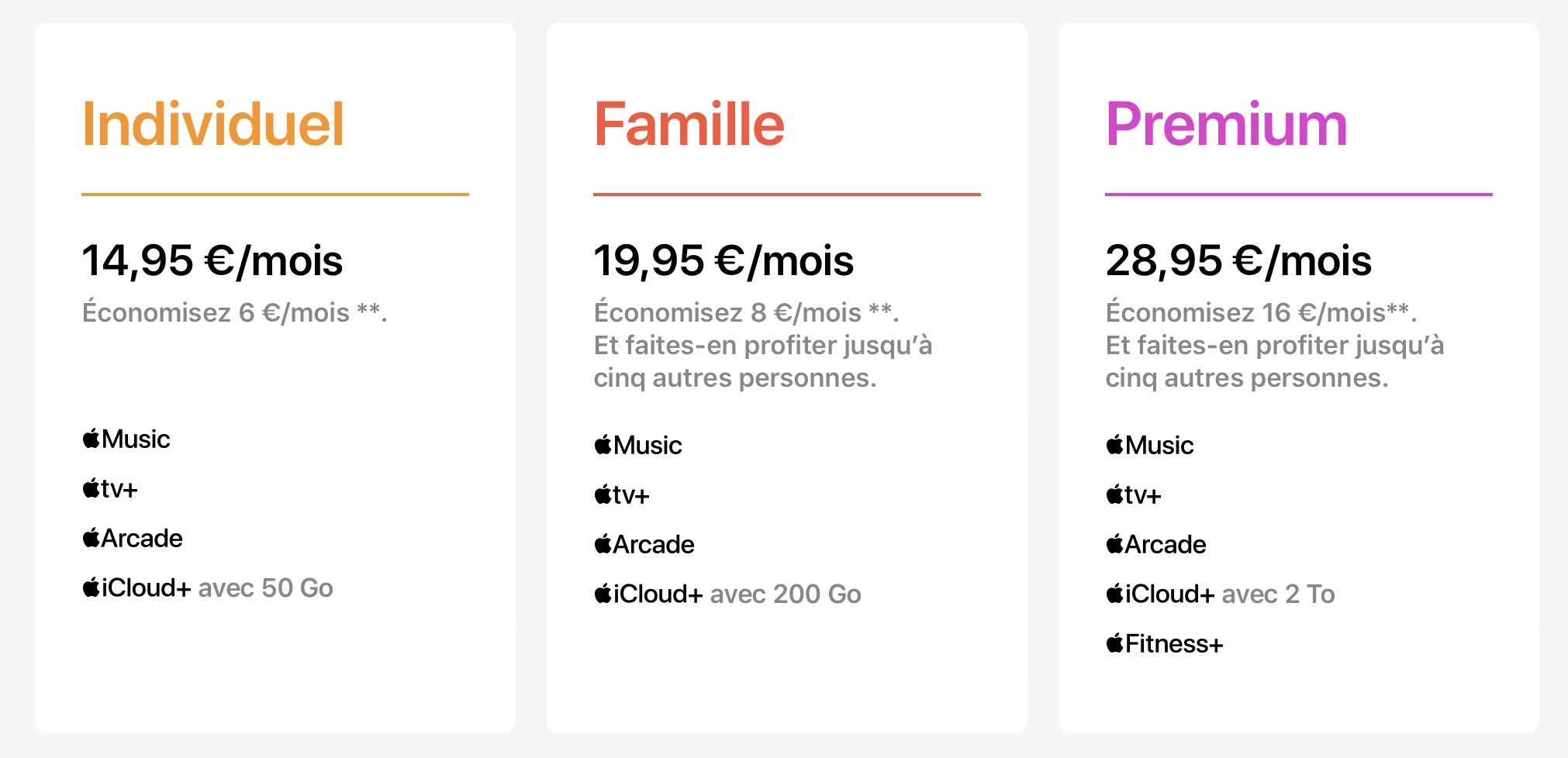 (source : Incidence d’un abonnement à Apple One sur votre forfait de stockage iCloud)