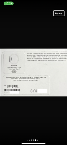 je souhaite acquérir une Apple Watch série 6 d’occasion. Mais j’ai un petit problème sur une montre qui m’intéresse, le packaging est le premier que je vois comme celui-là et ensuite le numéro de série indique que la montre n’est pas couverte par la loi sur la protection des consommateurs (elle aurait été achetée en Allemagne). Je ne pense pas que ça soit une fausse, mais est-ce que vous pourriez éclairer ma lanterne ? Merci beaucoup.