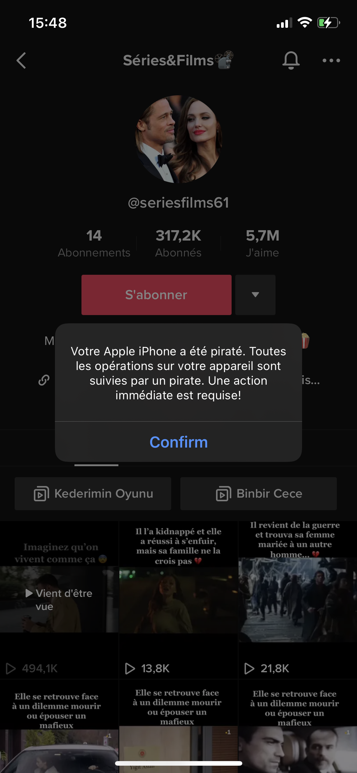 Bonjour, jài reçu cette notification sur mon iPhone après avoir cliqué sur un pub en voulant cliquer sur La Croix pour fermer. Je ne sais pas quoi faire merci d’avance
