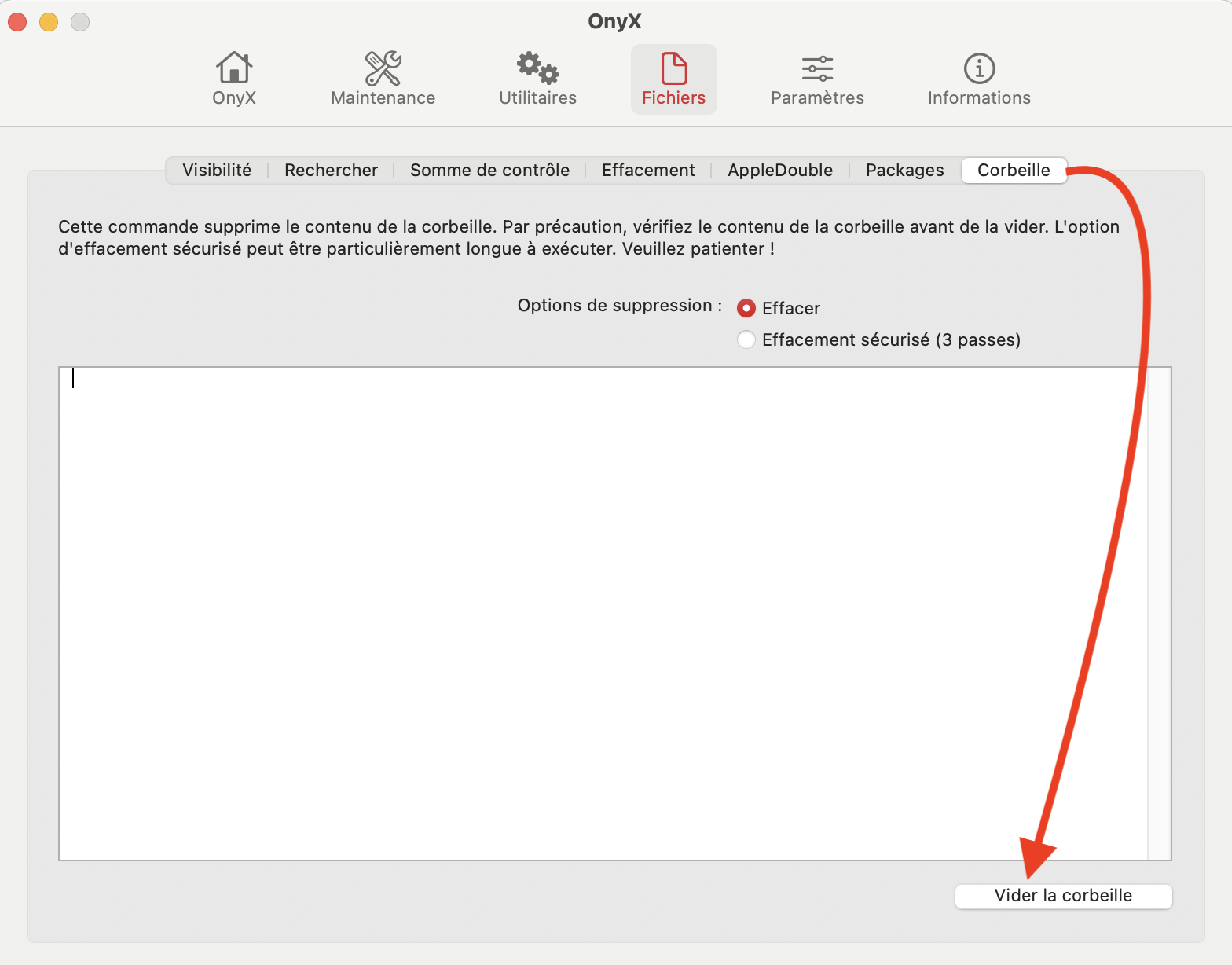 Forcer le vidage de la corbeille