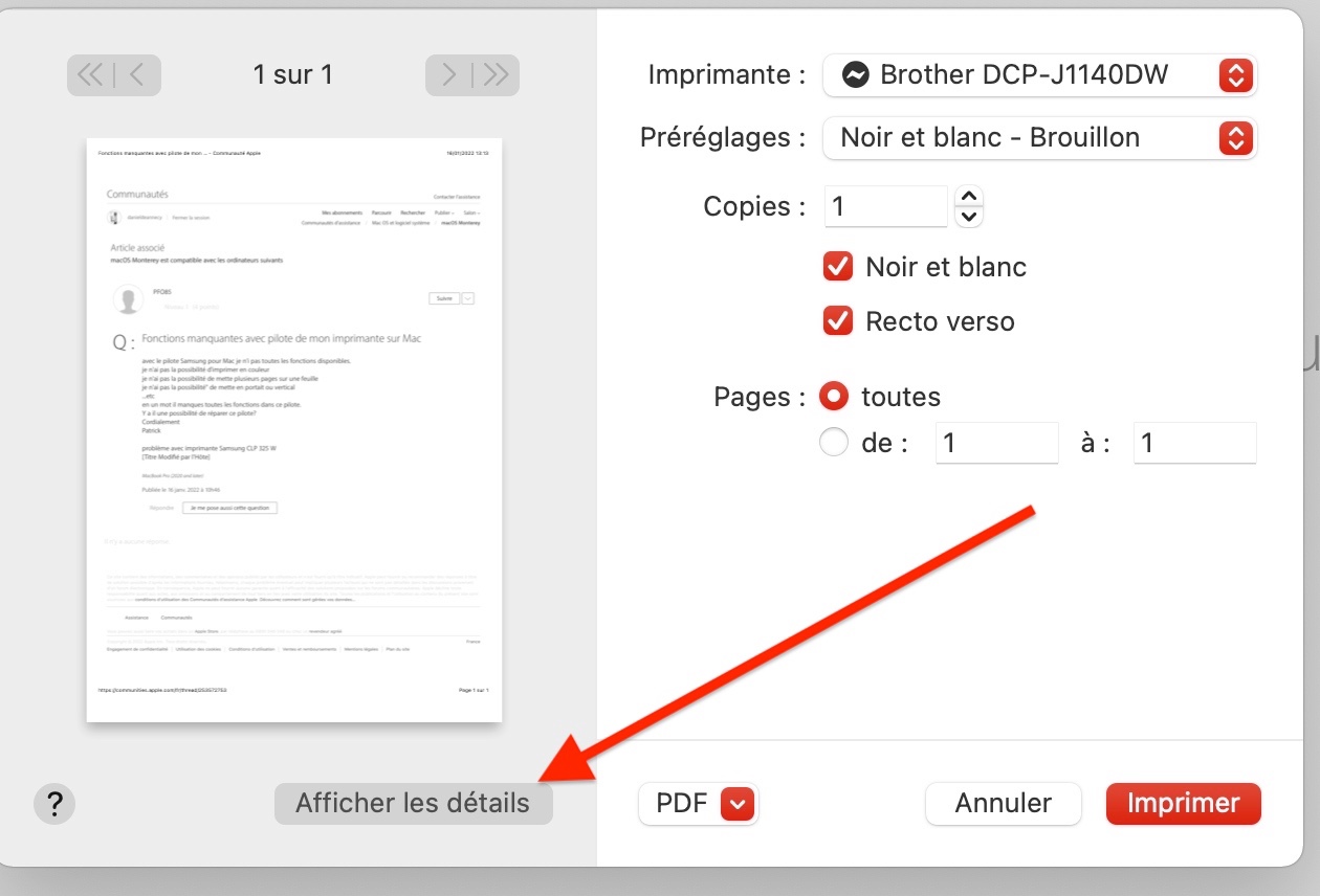 Fonctions manquantes avec pilote de mon imprimante sur Mac