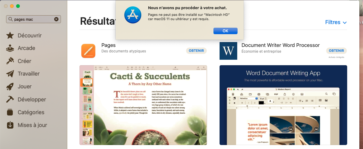Je ne peux pas effectuer une mise à jour plus récente que macOS Catalina 10.15.7. Je suis donc bloquée pour obtenir des nouvelles applications comme pages pour remplacer Word. Comment pouvons nous contourner le problème? Existe un moyen de mettre à jour?