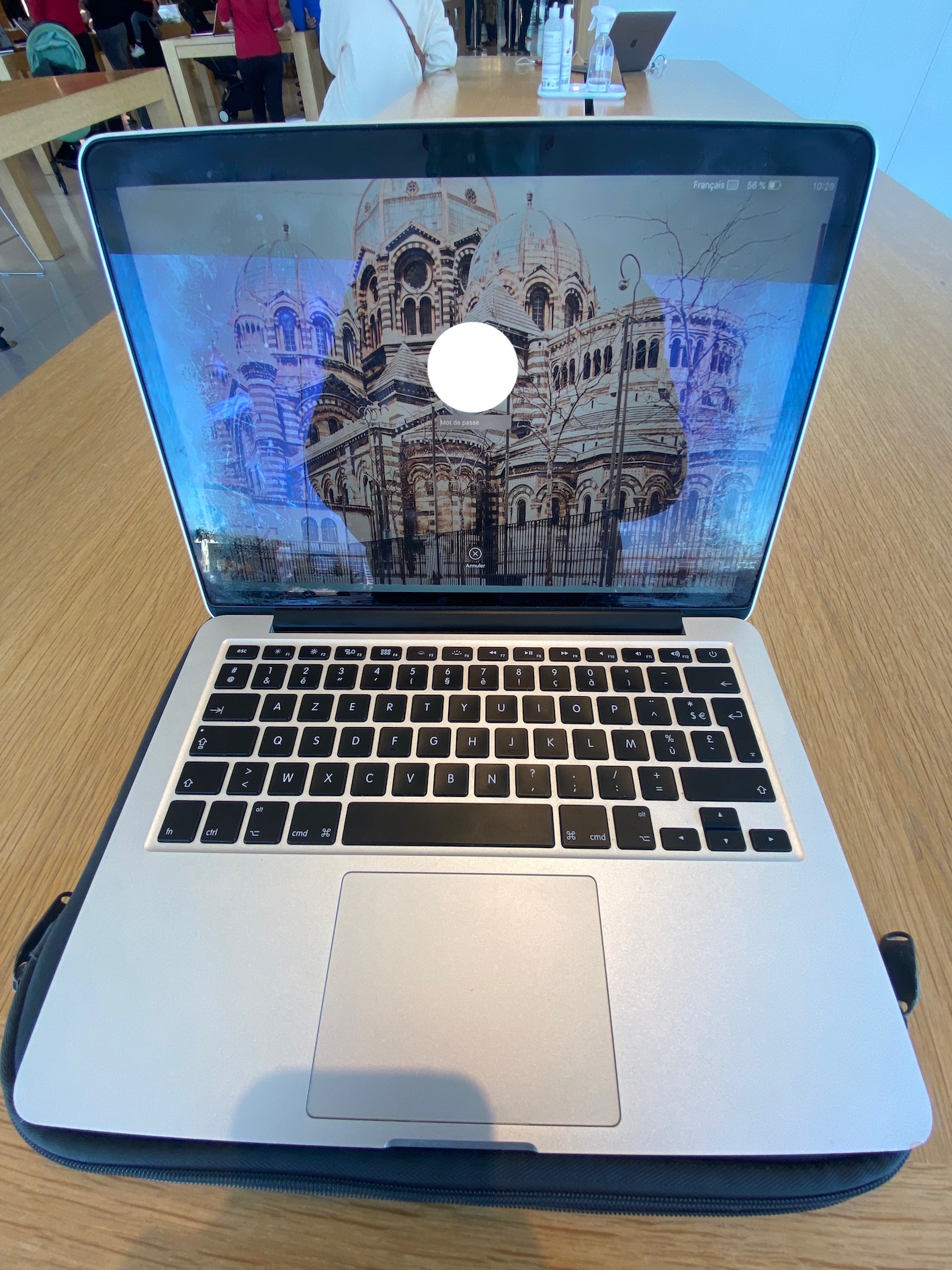 Juste pour vous dire que si vous avez un écran tachée dans la pellicule anti reflet MacBook 2015, la solution ::: j’ai nettoyé avec la pierre d argent et un chiffon et mon mac est revenu sans aucune rayure cette photo c’est l avant