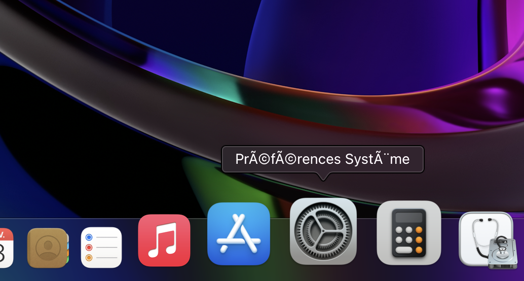 Le nom d'une icône dans le Dock du Mac s'affiche mal