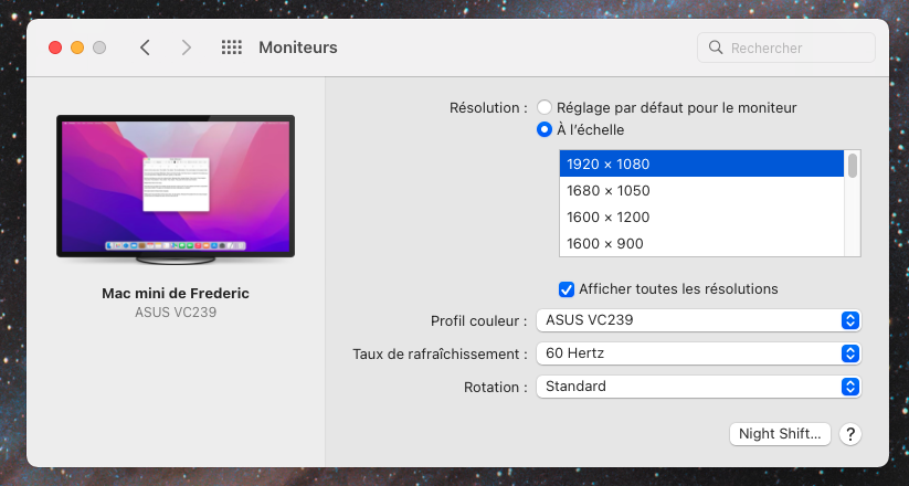 Par contre, je mon Mac mini M1 (monterey) est branché sur un écran 24" Asus Vc239H (fhd) et ça me détruit les yeux, l'affichage est un poil flou, la police est grossière et baveuse pour ce qui est en gras.