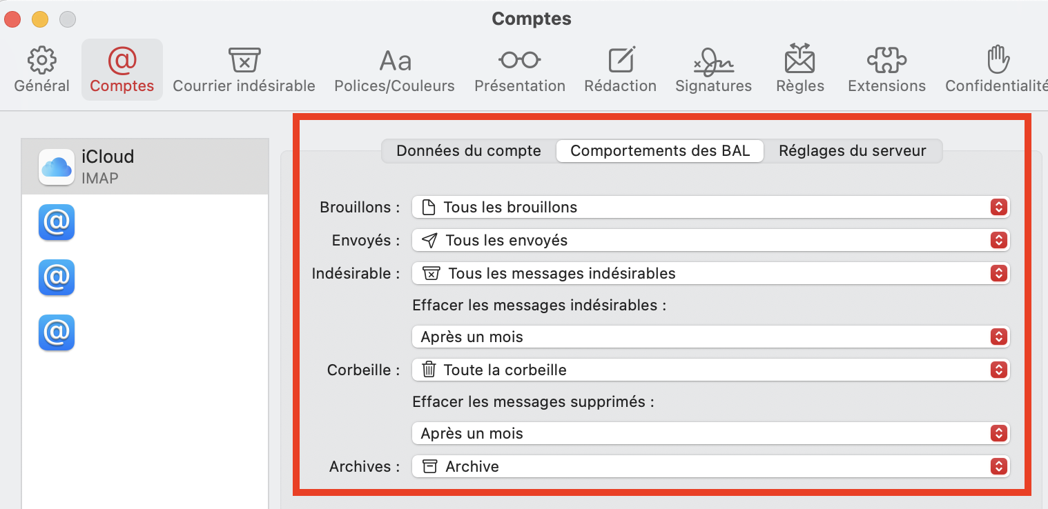 Avec la version 15 de mail, sur iCloud "corbeille" a été remplacée par "deleted message". Le problème rencontré est que les messages supprimés (volontairement ou par mégarde) sont définitivement effacé alors que dans "corbeille" il fallait une action volontaire pour les effacer ce qui permettait de récupérer certains messages !! Quelqu'un pourrait me dire comment résoudre ce problème et revenir à "corbeille" ? merci d'avance