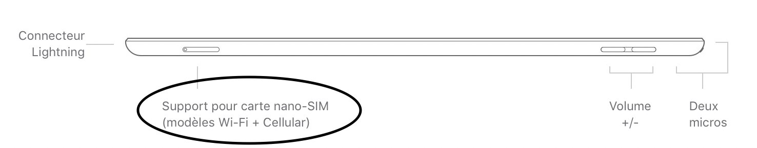 Voici une photo vous montre l'emplacement du logement pour la carte Sim de votre iPad.