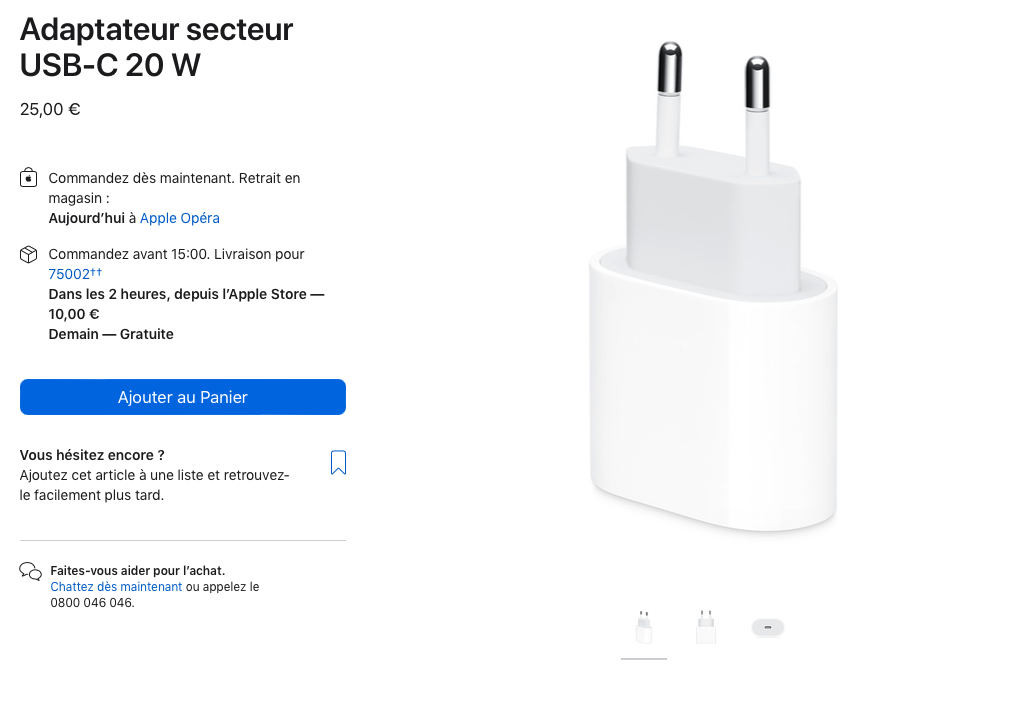 Je voudrais acheter un chargeur Apple pour iPhone 7 Plus .