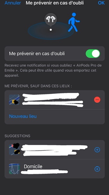 Depuis l’achat de l’iPhone 13 pro, mes AirPods Pro me jouent des mauvais tours. J’avais un iPhone 11 avant cela, et je n’avais pas constaté de souci avec mes AirPods. Mais voilà que depuis 2 semaines, des notifications de l’application Localiser m’alertent sur la perte d’un ou de mes deux écouteurs. Depuis mon changement de téléphone, j’ai eu 10 notifications de ce genre, parfois plusieurs fois dans la même journée. Je précise que cela arrivait même avant d’effectuer la maj 15.2.1…