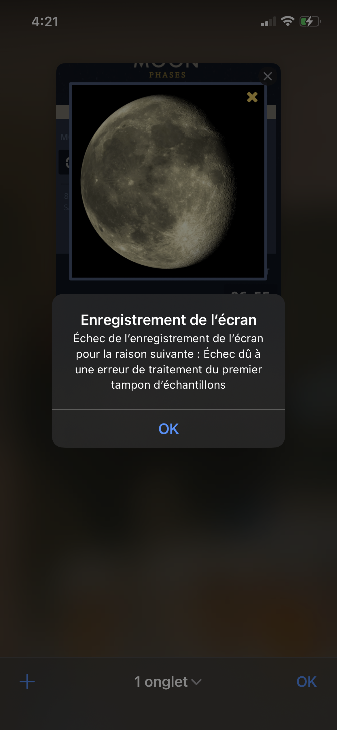 quand je veux enregistrer min écran il m’affiche ce message « Échec de l'enregistrement de l'écran