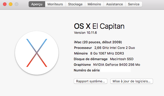 Bsr j'ai un iMac de 2009 et je n'arrive plus à mettre à jour l'IOS je suis e,n El CAPITAN 10.11.6, comment puis-je procéder ? Merci