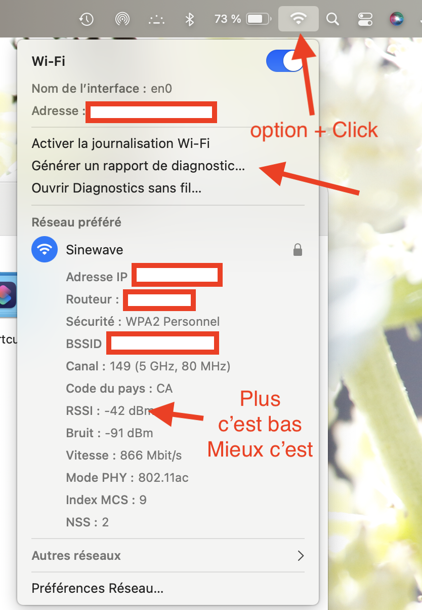 Depuis quelque temps, mon Macbook Air (2017) se montre capricieux au moment de se connecter à ma box internet (Livebox Orange). Que ce soit au démarrage ou en sortie de veille, il met du temps à se connecter à ma box (plus d'une minute alors qu'avant c'était immédiat), parfois il me demande la clé wifi alors qu'elle est déjà renseignée et parfois il refuse tout simplement de se connecter et 30 secondes plus tard, il finit par se connecter tout seul. Je précise que je n'ai effectué aucun changement réseau sur ma box.