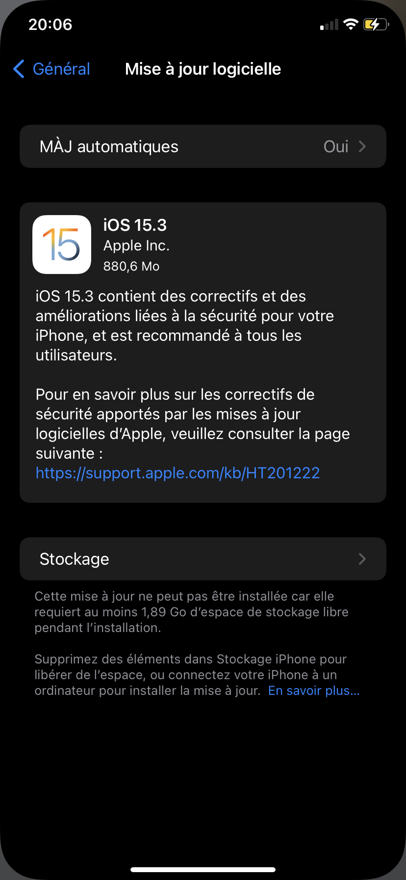 Une des méthodes simple et rapide est de désinstaller des apps le temps de l’opération de mise à jour, puis de les installer à nouveau après.