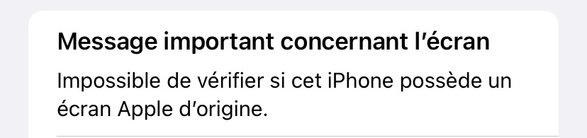 Impossible de vérifier si ce iPhone possède un écran Apple d’origine cela veut dire quoi