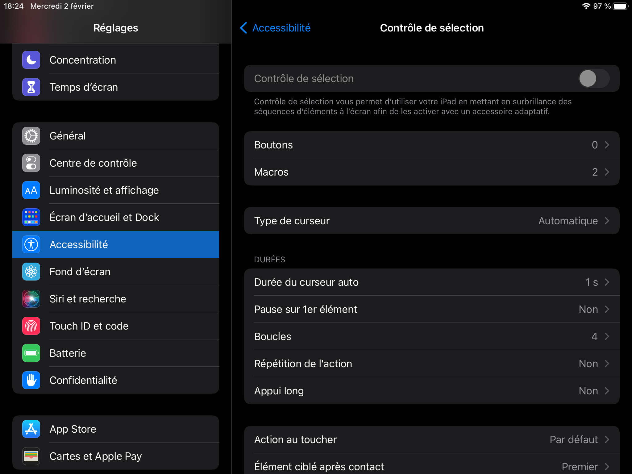 J’ai bien vu que la solution serait d’activer ou désactiver le bouton contrôle de sélection dans accessibilité, mais ce bouton est inactif dans mon menu, il est grisé. Comment l’activer si c’est la solution ?