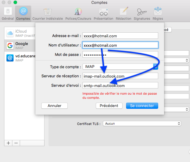 Mail pour Mac n'accepte pas mon mot de passe Hotmail