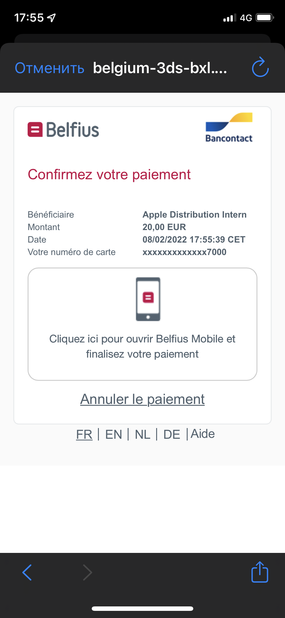 Vous m'avez mal compri, je dis que quand j'essaye de posser de l'argent sur mon compte App Store via Belfius Mobile, L'application ne ce démare pas en appuyant sur le boutton où c'est ecrit "appuyer ici pour démarer Belfius Mobile"
