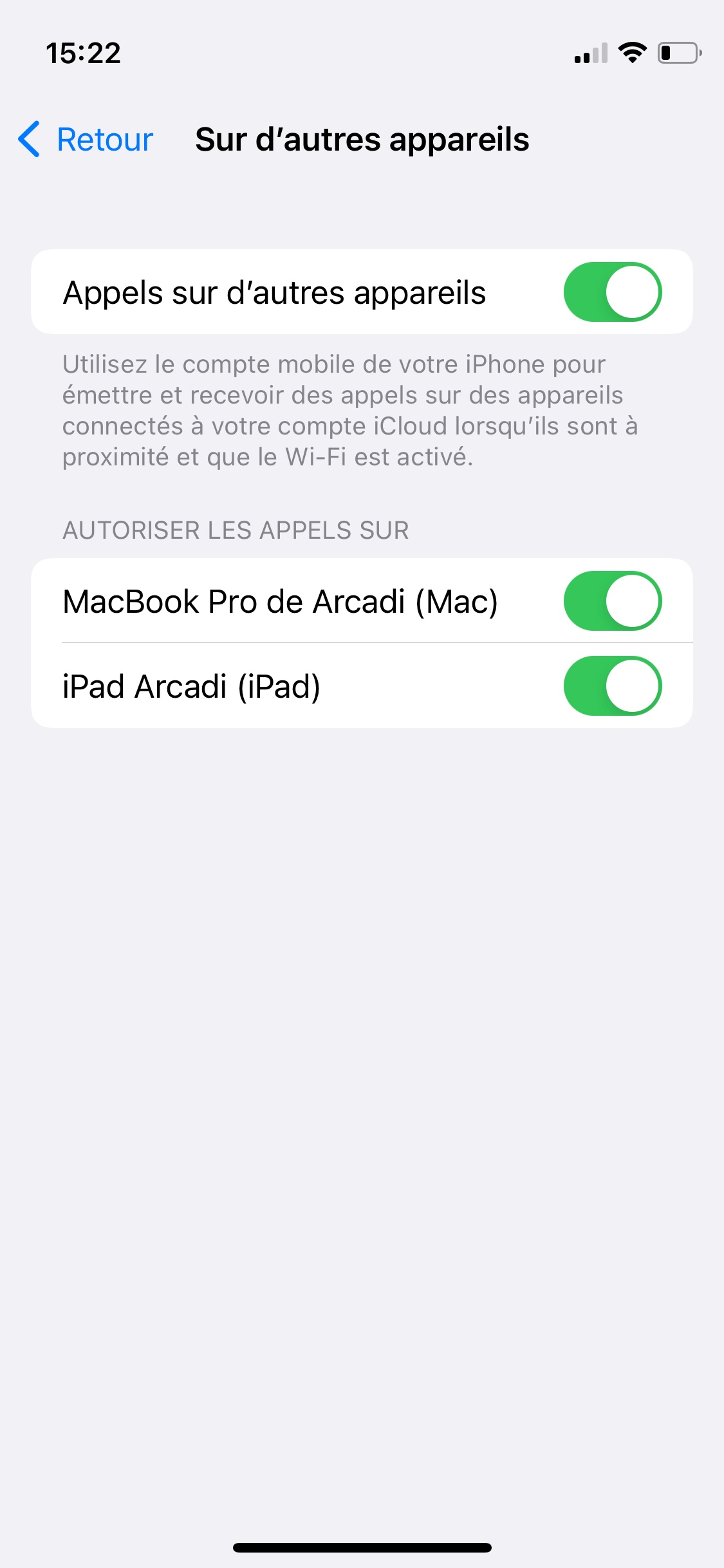 Appel téléphonique transféré sur un iphone du même compte icloud