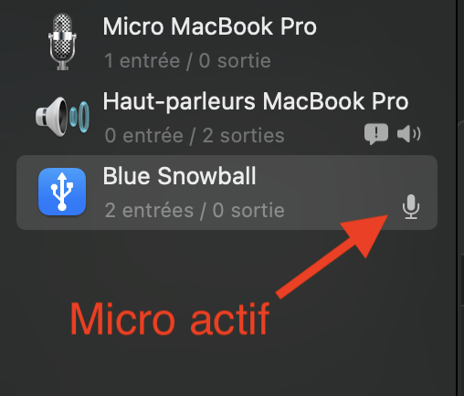 Et pourtant le voyant orange signalant que le micro est actif dans le centre de contrôle apparait bien.