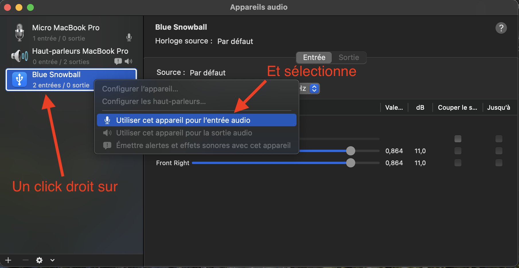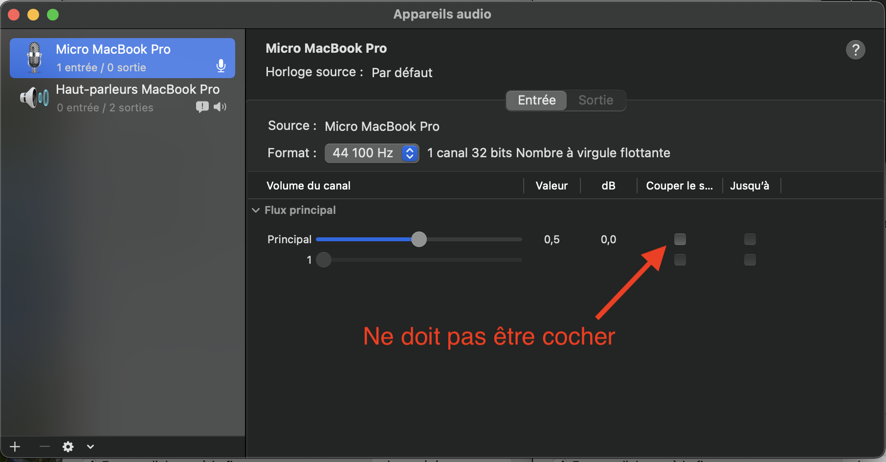 Dans mes Préférences systèmes \ Son \ Entrée, je vois bien apparaitre et sélectionne le micro de la webcam et le barre graphique du volume d'entrée est au plus haut et le niveau d'entrée réagisse bien lorsque je parle.
