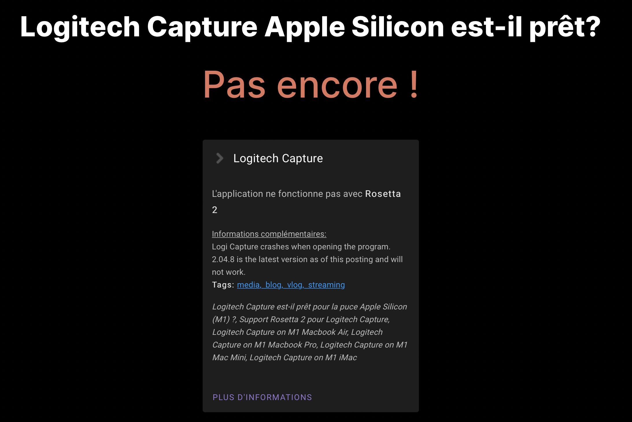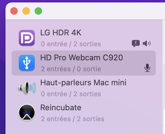 Je possède un Mac mini M1sous Mac OS Monterey 12.2.1 et je viens de l'équiper d'une webcam Logitech C920s .