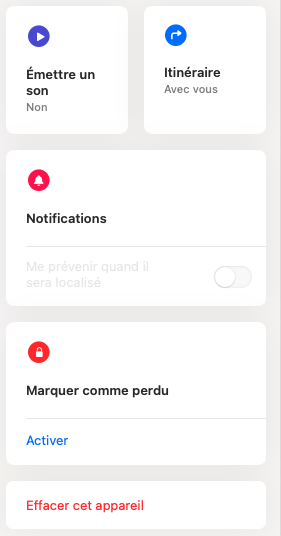 Gestion appareil dans service localisation Apple