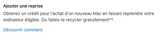 Vous pouvez obtenir une remise via Apple Trade In qui reprend votre ancien appareil.