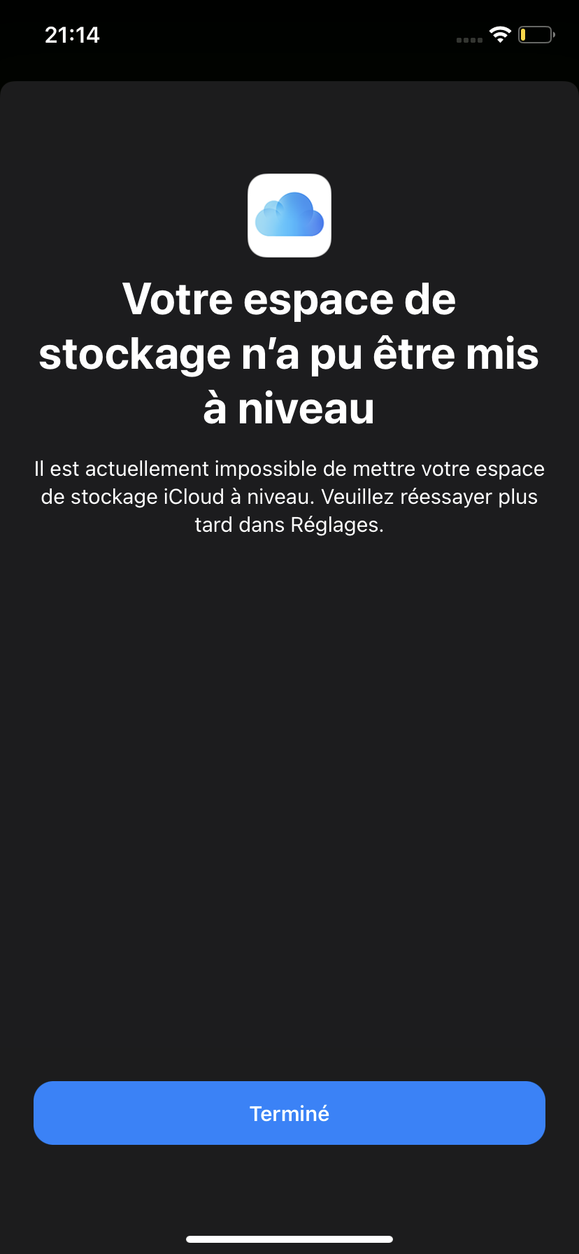 Quand je fais les démarches pour prendre un abonnement Icloud celui ci me dit que l’espace de stockage ne peut être mis à niveau