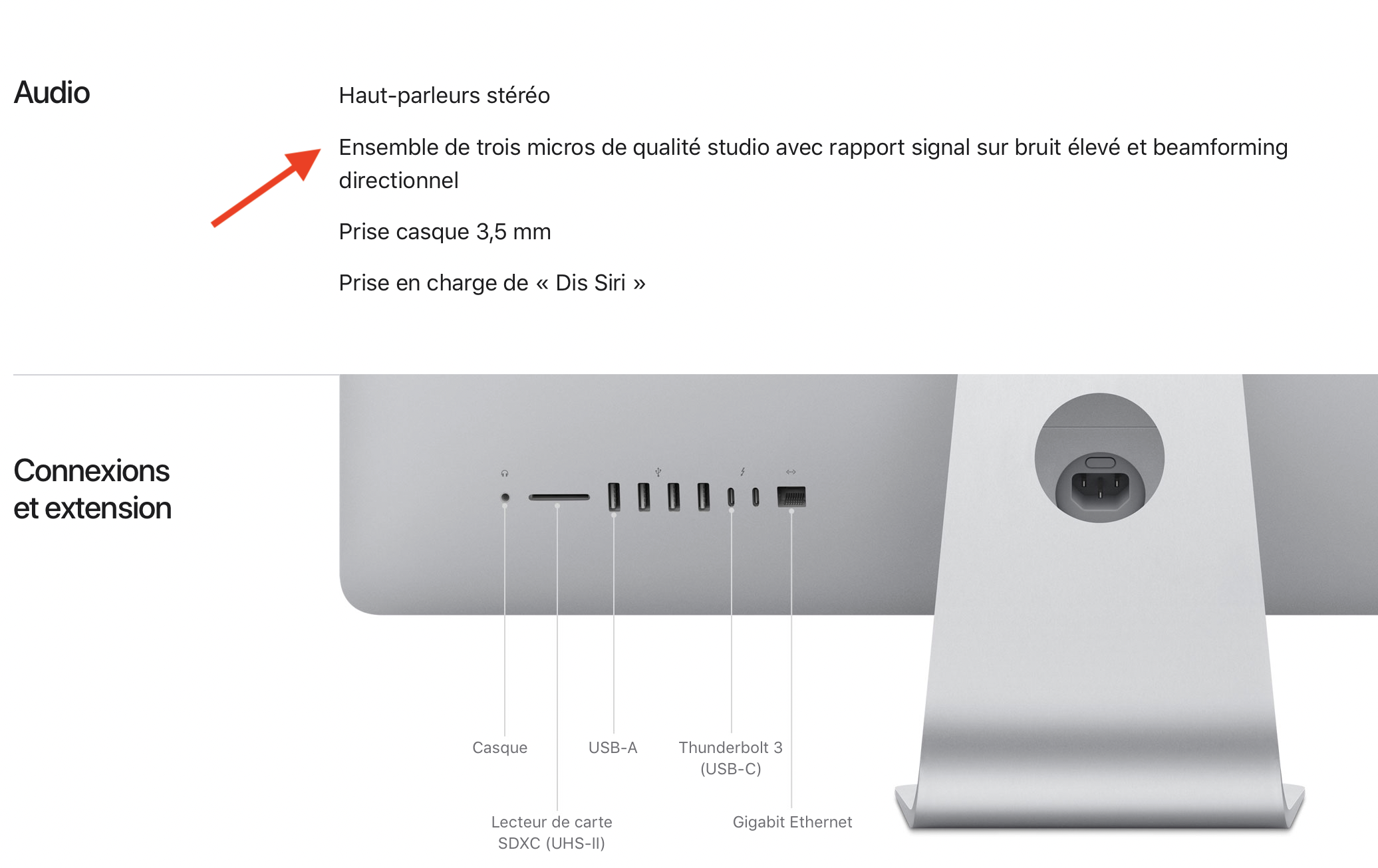 ATTENTION la sortie audio de l'iMac n'est dédier que pour y brancher un casque d'écoute et surtout surtout pas un micro (que tu pourrais endommager si tu le branche sur ce port)🥲