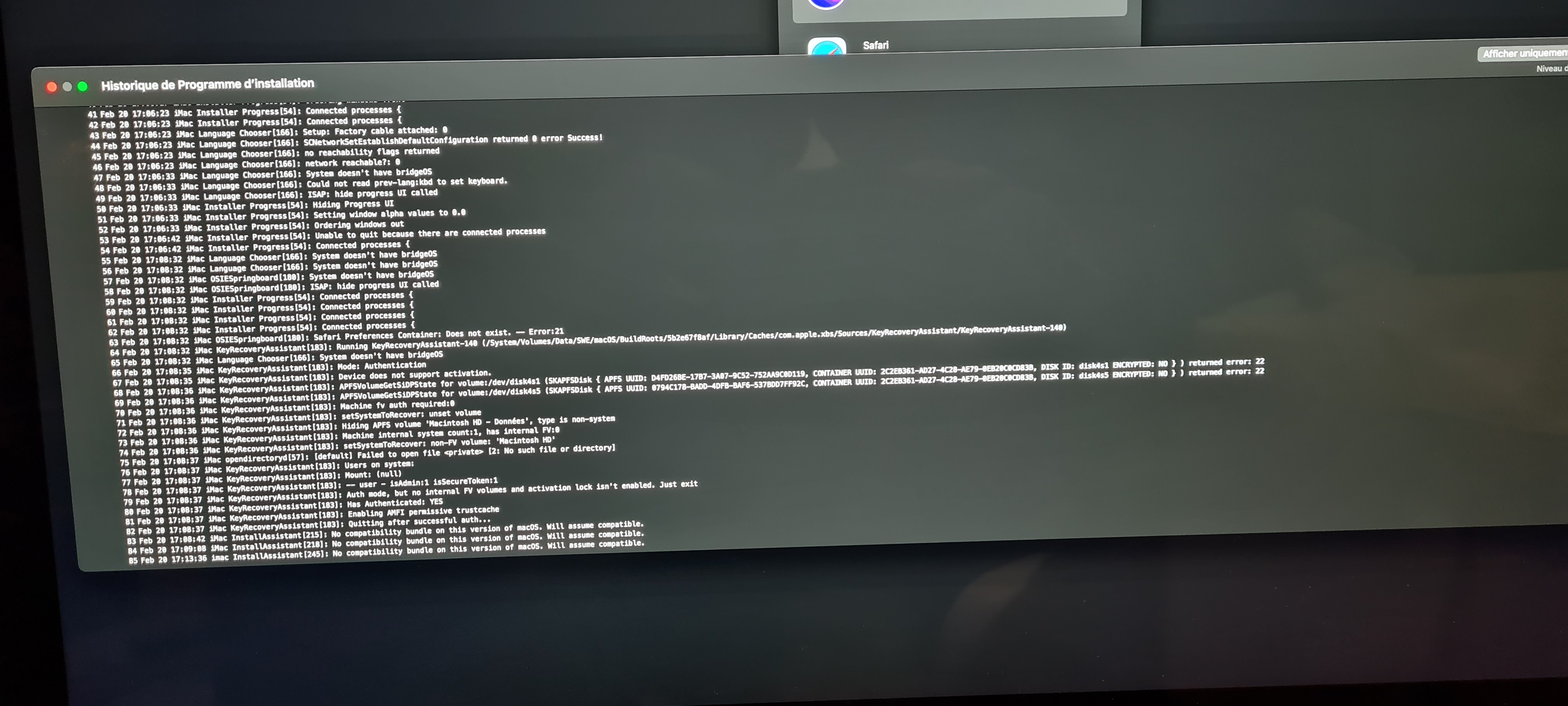 je le répète chaque fois, ce genre de manipulation avec changement de macOS, il faudrait la faire dans ce contexte et ne pas avoir besoin de son Mac: