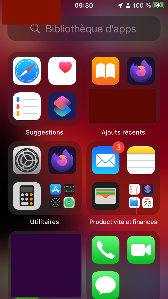 J’ai réalisé deux copies d’écran de la bibliothèque d’app de mon iPhone.